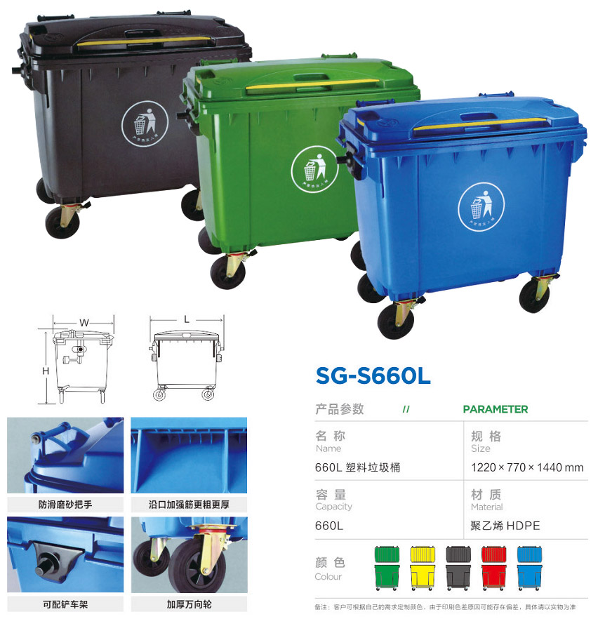 菜單産品中心Product center 塑料垃圾桶 垃圾分類房 垃圾分類亭 智能(néng)回收箱 多分類垃圾桶 不鏽鋼果皮箱 鋼木果皮箱 有害垃圾箱 室内垃圾桶 花箱/公園椅 人力保潔車 新能(néng)源環衛車 噴塑加工 钣金加工 熱門産品 →噴塑加工 →外殼钣金加工 →SG-S240G-标準款 您的位置:首頁 → 公司産品 → 塑料垃圾桶 → SG-S660L SG-S660L類别:塑料垃圾桶 簡介:公司專業生産“蘇冠”、“ 智尚彙”品牌的各種塑料垃圾桶、智能(néng)回收箱、智能(néng)清潔小屋、(不鏽鋼、金屬、鋼木、玻璃鋼、石材)垃圾桶、垃圾屋、果殼箱、清潔車、移動廁所、戶外休閑椅、廣告牌等系列産品。産品廣泛應用于生活小區、公共場所、園林綠化、賓館、醫院等場所。采用國際标準的原材料進行生産,産品具有美觀、耐用、防腐、環保等優點,對改善生活環境和工作起(qǐ)到一定的推動作用。 在線咨詢 返回列表 産品說明 相關産品 SG-S12L/10L SG-S12L/10L SG-S15L/14L/8L SG-S15D SG-S20F/16F SG-S25T