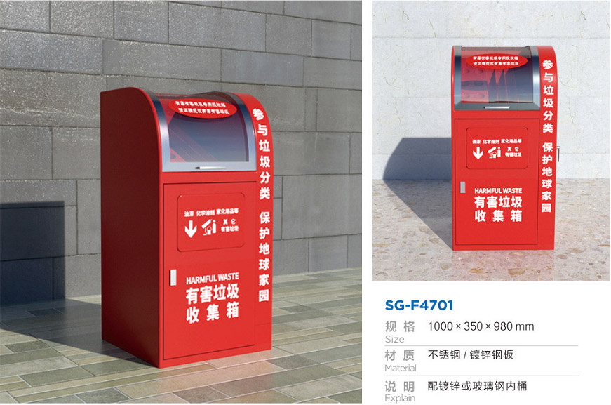 菜單産品中心Product center 塑料垃圾桶 垃圾分類房 垃圾分類亭 智能(néng)回收箱 多分類垃圾桶 不鏽鋼果皮箱 鋼木果皮箱 有害垃圾箱 室内垃圾桶 花箱/公園椅 人力保潔車 新能(néng)源環衛車 噴塑加工 钣金加工 熱門産品 →噴塑加工 →外殼钣金加工 →SG-S240G-标準款 您的位置:首頁 → 公司産品 → 有害垃圾箱 → SG-F4701 SG-F4701類别:有害垃圾箱 簡介:公司專業生産“蘇冠”、“ 智尚彙”品牌的各種塑料垃圾桶、智能(néng)回收箱、智能(néng)清潔小屋、(不鏽鋼、金屬、鋼木、玻璃鋼、石材)垃圾桶、垃圾屋、果殼箱、清潔車、移動廁所、戶外休閑椅、廣告牌等系列産品。産品廣泛應用于生活小區、公共場所、園林綠化、賓館、醫院等場所。采用國際标準的原材料進行生産,産品具有美觀、耐用、防腐、環保等優點,對改善生活環境和工作起(qǐ)到一定的推動作用。 在線咨詢 返回列表 産品說明 相關産品 SG-F4701