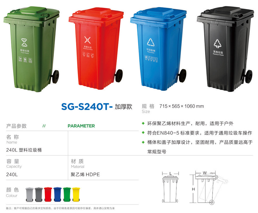 菜單産品中心Product center 塑料垃圾桶 垃圾分類房 垃圾分類亭 智能(néng)回收箱 多分類垃圾桶 不鏽鋼果皮箱 鋼木果皮箱 有害垃圾箱 室内垃圾桶 花箱/公園椅 人力保潔車 新能(néng)源環衛車 噴塑加工 钣金加工 熱門産品 →噴塑加工 →外殼钣金加工 →SG-S240G-标準款 您的位置:首頁 → 公司産品 → 塑料垃圾桶 → SG-S240T SG-S240T類别:塑料垃圾桶 簡介:公司專業生産“蘇冠”、“ 智尚彙”品牌的各種塑料垃圾桶、智能(néng)回收箱、智能(néng)清潔小屋、(不鏽鋼、金屬、鋼木、玻璃鋼、石材)垃圾桶、垃圾屋、果殼箱、清潔車、移動廁所、戶外休閑椅、廣告牌等系列産品。産品廣泛應用于生活小區、公共場所、園林綠化、賓館、醫院等場所。采用國際标準的原材料進行生産,産品具有美觀、耐用、防腐、環保等優點,對改善生活環境和工作起(qǐ)到一定的推動作用。 在線咨詢 返回列表 産品說明 相關産品 SG-S12L/10L SG-S12L/10L SG-S15L/14L/8L SG-S15D SG-S20F/16F SG-S25T